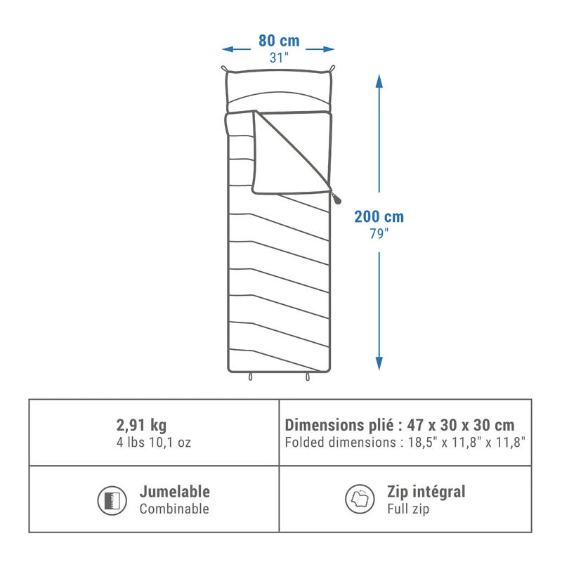 Nos concepteurs campeurs ont conçu ce sac de couchage Arpenaz 0° Coton pour dormir confortablement en camping à des températures proches de 0°C.0°C. Notre motivation ? Vous proposer le plus chaud de nos sacs de couchage en coton, pour un confort optimal. Convertible en couette, vous pouvez aussi adapter la capuche. Garantie 5 ans !